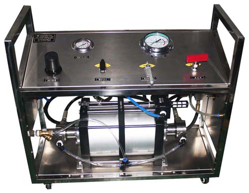 對(duì)于氮?dú)?、氧氣、氬氣、氦氣、二氧化碳?xì)獾?,該機(jī)器將分別采用不同的增壓器和特殊的管路、元件,如選用的增壓器驅(qū)動(dòng)腔與增壓腔之間有隔離腔,可防止被增壓氣體和壓縮空氣混合,避免被增壓氣體遭受污染。