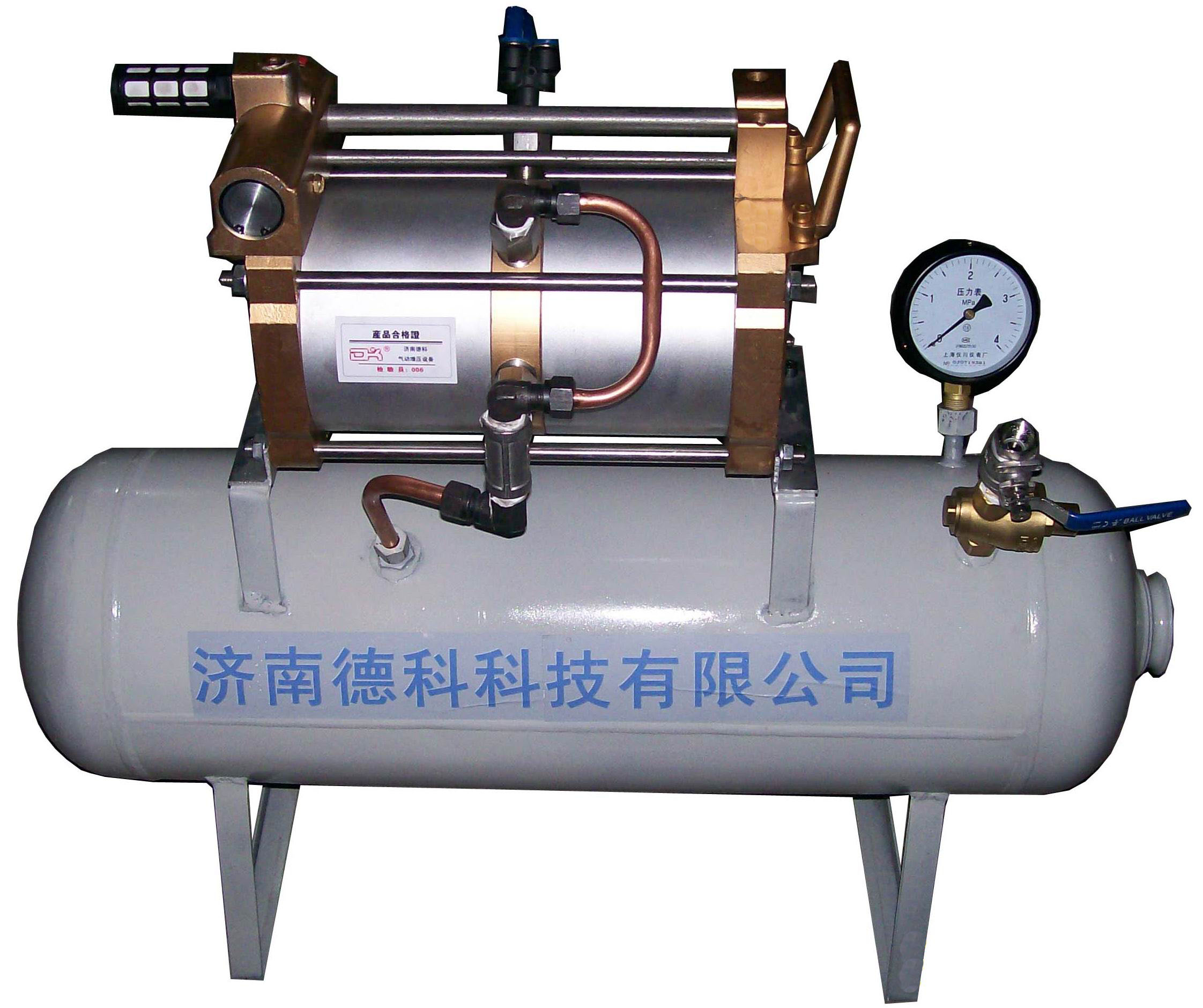 壓縮空氣增壓泵設(shè)備是以濟南德科氣動增壓泵或者空氣增壓泵做為核心部件,連接儲氣罐(10L-108L),同時配以閥門、壓力表、減壓閥組成的氣體增壓穩(wěn)壓系統(tǒng),輸出壓力穩(wěn)定且可以調(diào)節(jié),可以根據(jù)客戶要求量身定做,濟南德科增壓泵密封件全部采用進口件,其他部件全部采用精密機床進行加工,保證設(shè)備的長時間可靠運行。
