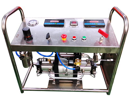 對(duì)于氮?dú)?、氧氣、氬氣、氦氣、二氧化碳?xì)獾?,該機(jī)器將分別采用不同的增壓器和特殊的管路、元件,如選用的增壓器驅(qū)動(dòng)腔與增壓腔之間有隔離腔,可防止被增壓氣體和壓縮空氣混合,避免被增壓氣體遭受污染。
